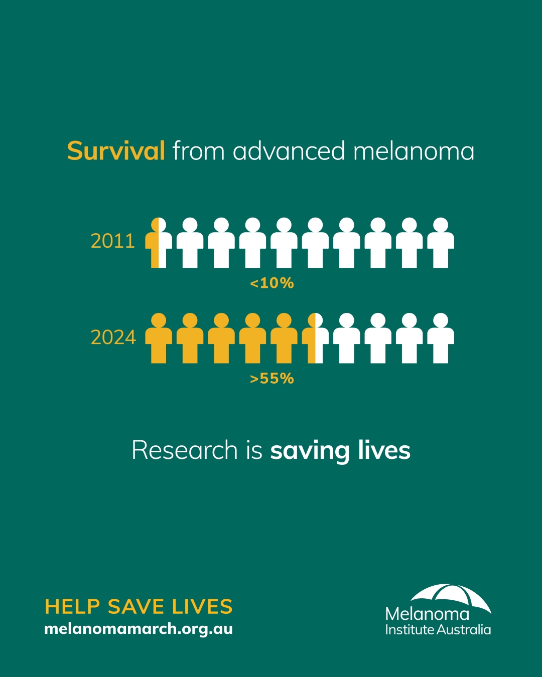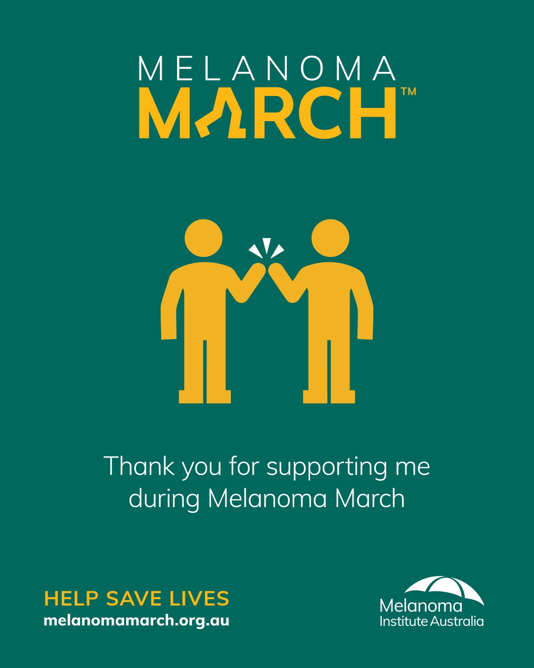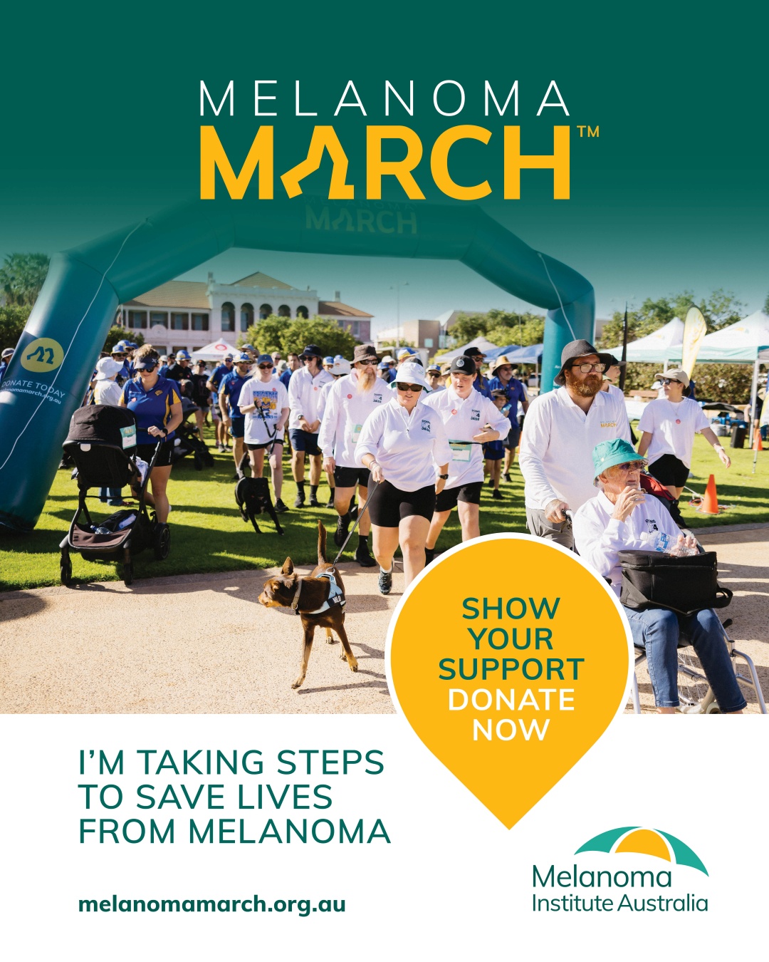Melanoma March events are held around Australia during March to raise vital funds for melanoma research and increase awareness of melanoma. The events also provide an opportunity for patients, families and communities to come together to support each other and remember those lost to the disease.